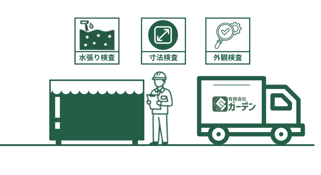 完成した水槽は、出荷前に厳格な検品プロセス(水張り検査、寸法検査、外観検査など)を経て、品質基準をクリアしたもののみを出荷いたします。