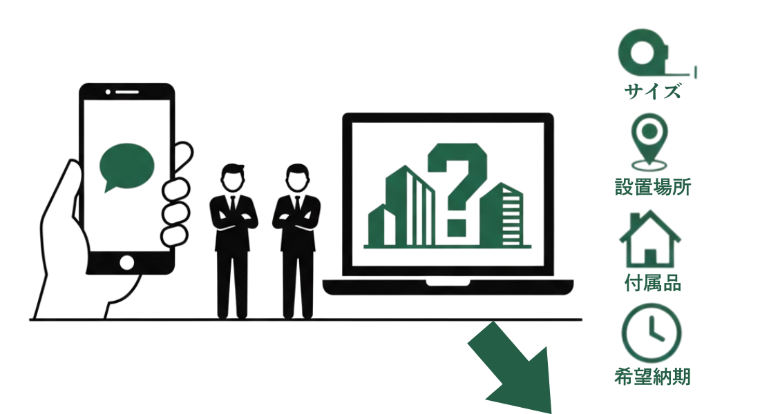 貴社のお客様(エンドユーザー様)から水槽の具体的なご要望が出ましたら、まずはお気軽にご連絡ください。案件の規模や、仕様の概要(サイズ感、設置場所、ご希望納期など)わかる範囲でお知らせいただくだけで結構です。